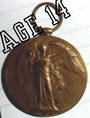 over zijn beverige handpalm glijden. '1914-'15 Star' stond er