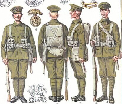 een tas en de bajonet in de schede. De korporaals en sergeanten
