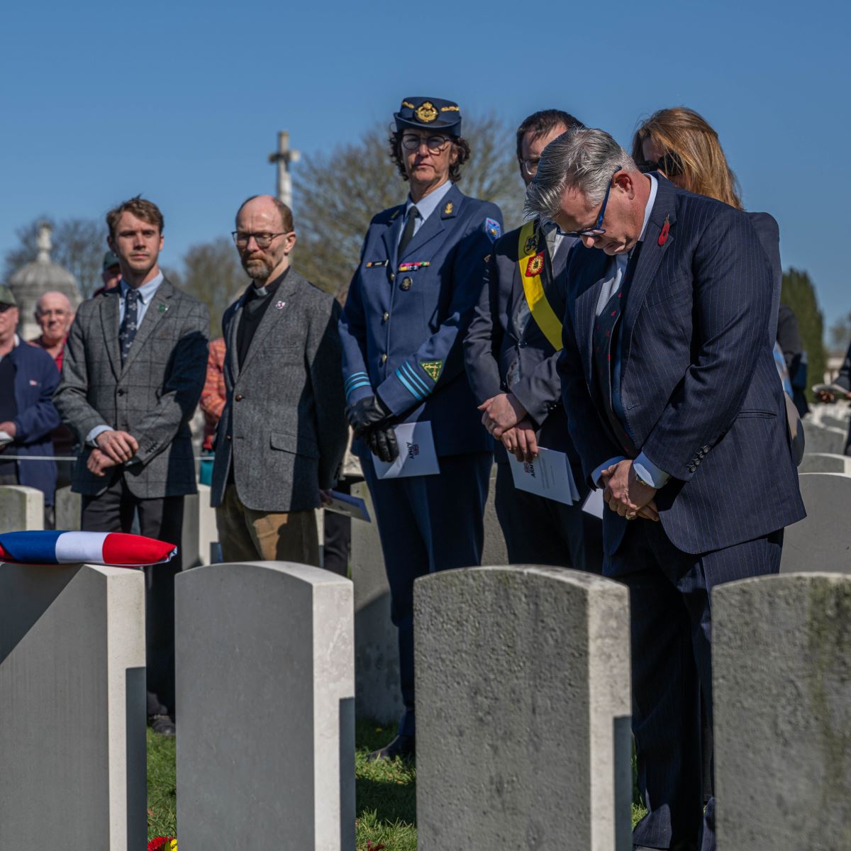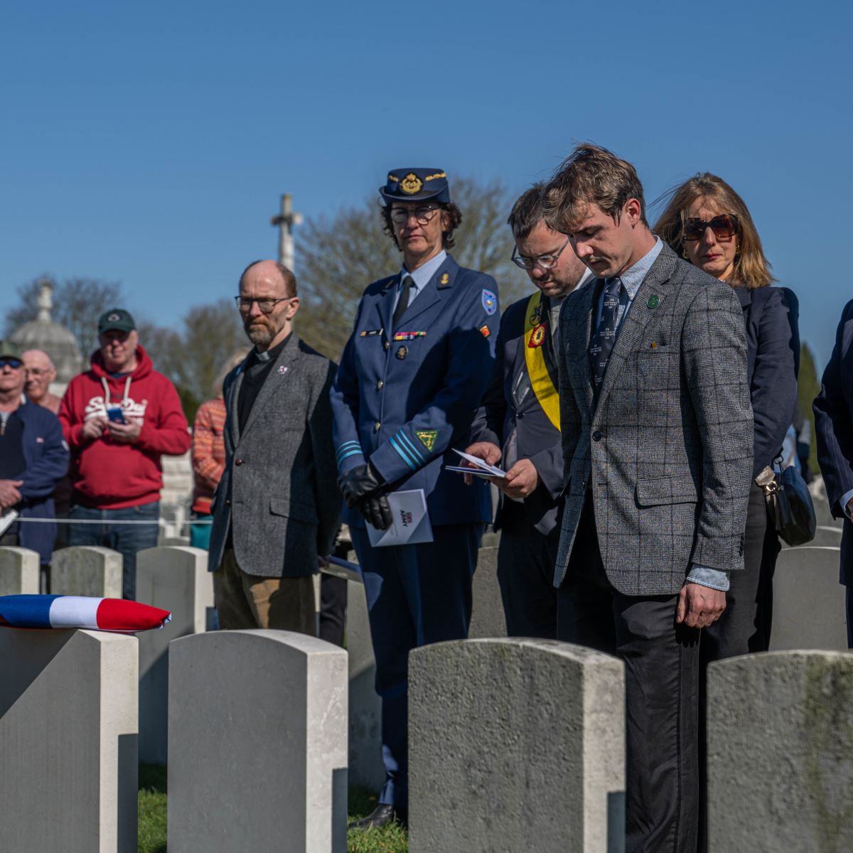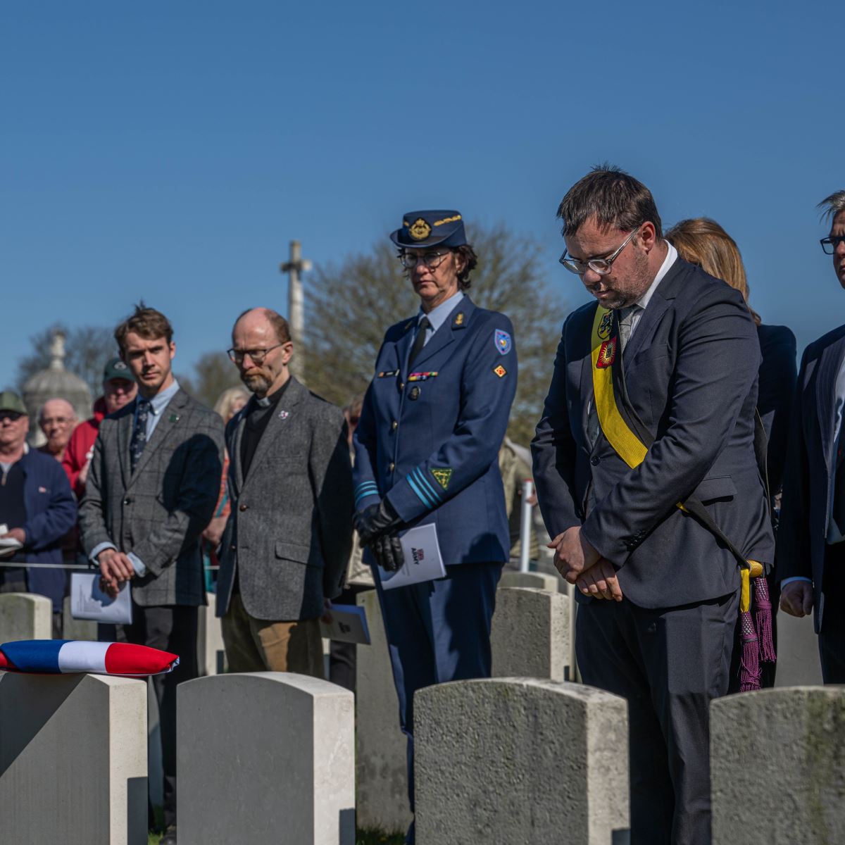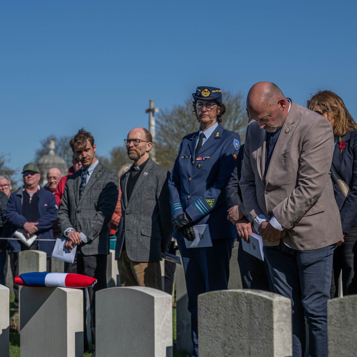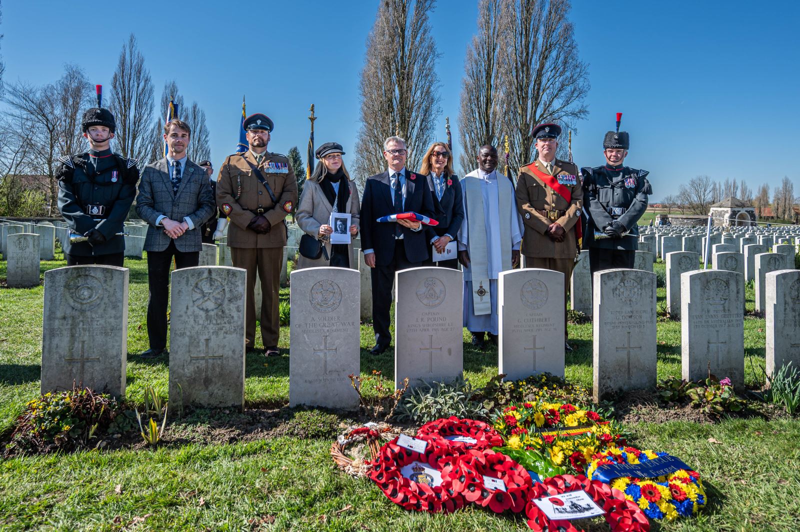 On Wednesday, 18 March 2026, at 12:30 hours, a ceremony was held at the British Tyne Cot Cemetery in Passchendaele. Captain John Russell Pound was given a new gravestone bearing his name, thanks to research that proved he was indeed buried there.
