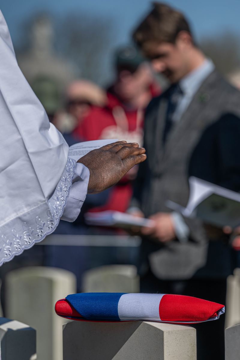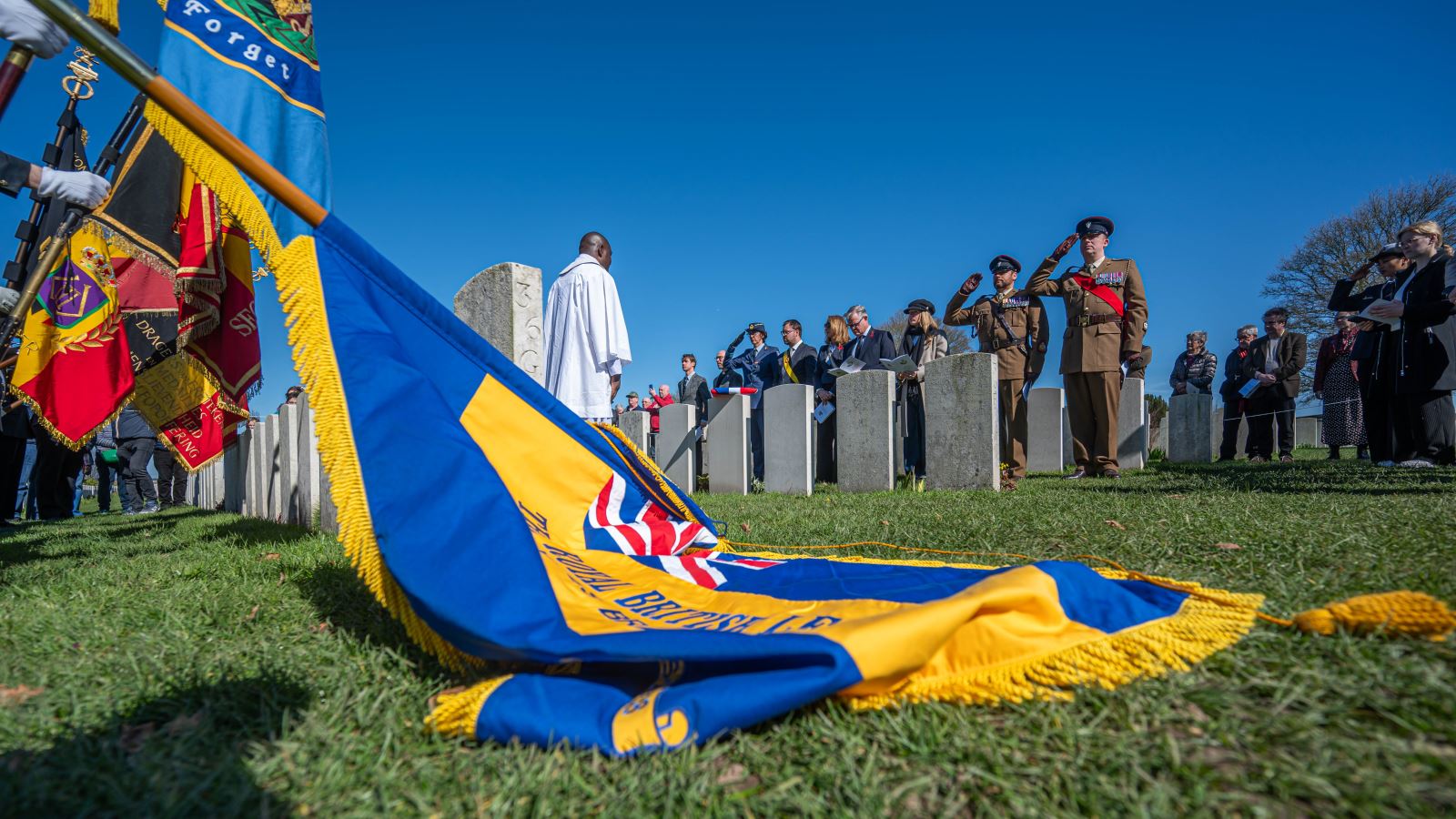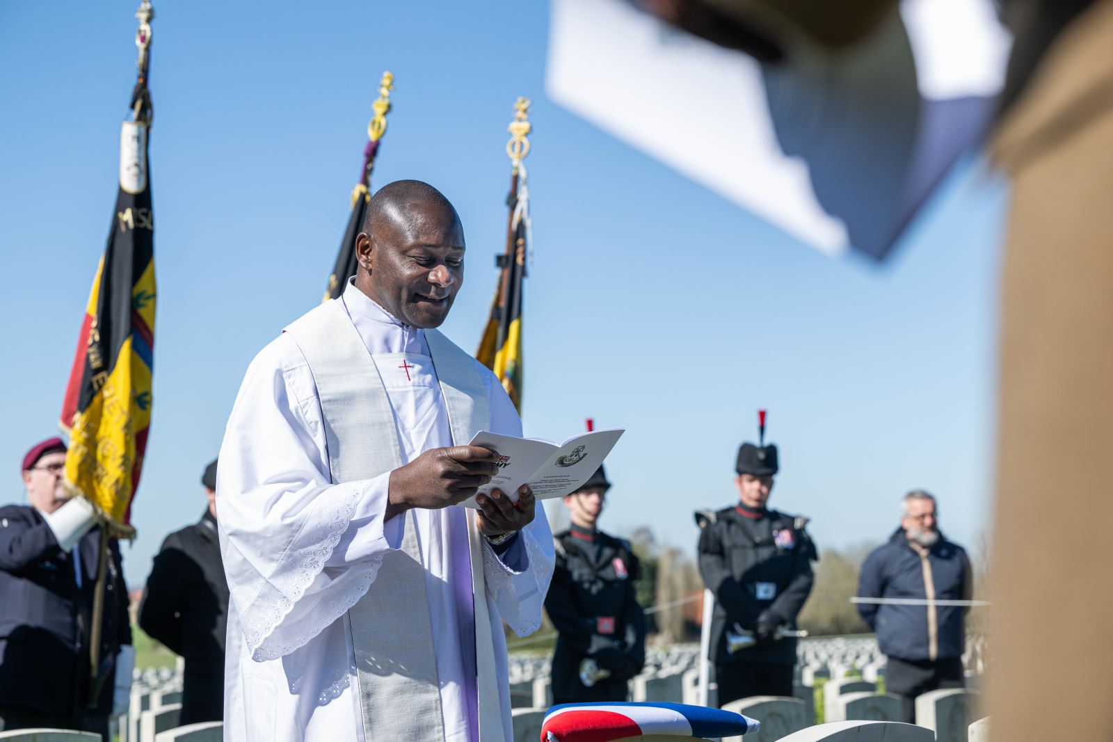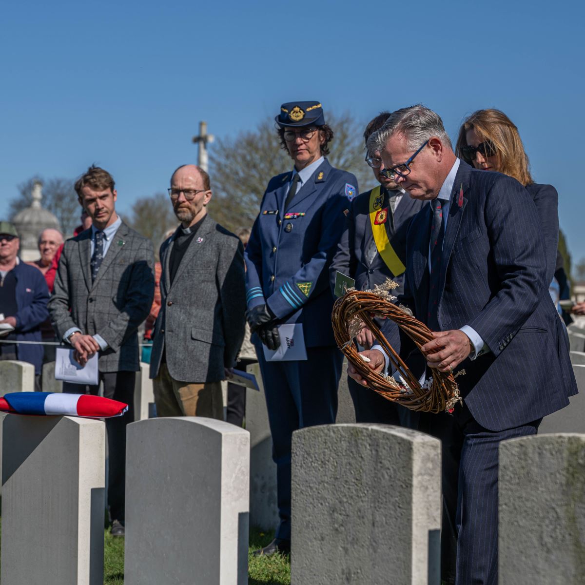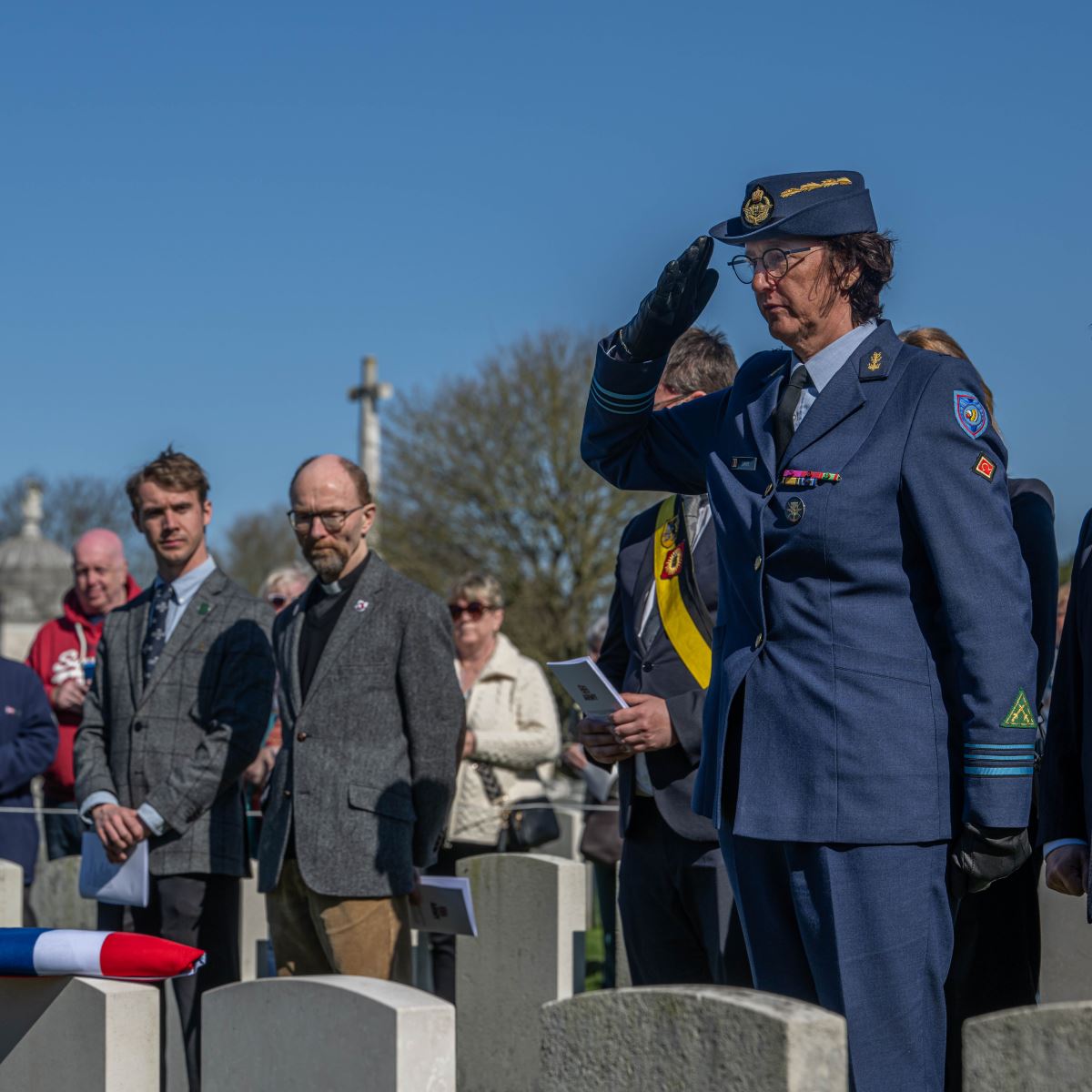 On Wednesday, 18 March 2026, at 12:30 hours, a ceremony was held at the British Tyne Cot Cemetery in Passchendaele. Captain John Russell Pound was given a new gravestone bearing his name, thanks to research that proved he was indeed buried there.