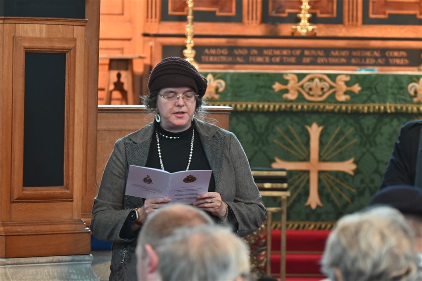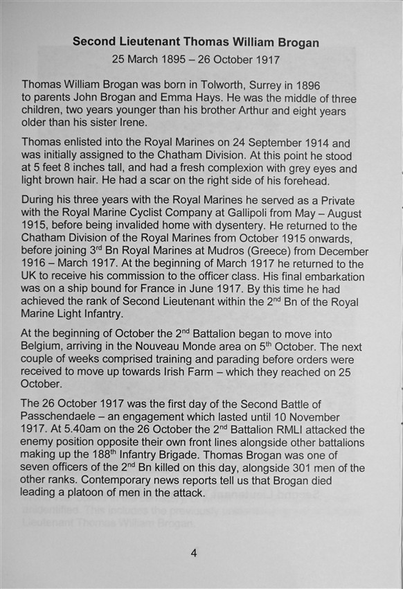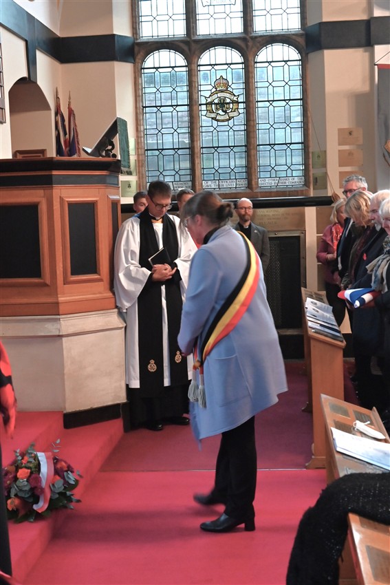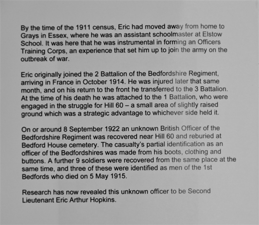 After the outdoor ceremony on the morning of 23rd October 2025 for 2nd Lt. E. L. Kellie, both rededication ceremonies of the afternoon were conducted at St. George's Memorial Church at Ypres due to the bad weather. The ceremonies for 2nd.Lt. Thomas William Brogan (KIA 26 Oct 917) of the 2n Bn. Royal Marine Light Infantry and for 2dn Lt. Eric Arthur Hopkins (KIA 5 May 1915) of the 1st Bn. Bedfordshire Regt. were conducted respectively by Army Chaplains John Money and Joseph Roberts. Relatives of both men attended as did members of the regiments concerned. Thomas an Eric now longer rest as unknown soldiers but known to all an every one for ever. Thomas Brogan rests at Poelcapelle British Cemetery and Eric Hopkins at Bedford House Cemetery
