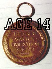 over zijn beverige handpalm glijden. '1914-'15 Star' stond er