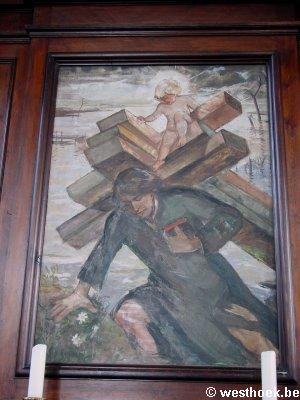 Het altaar in de dwarsbeuk werd in 1936 geschonken door de parochianen naar aanleiding van het zilveren ambtsjubileum van pastoor Volbout, kapelaan Verschaeve, kerkbaljuw Stangé en koster Vandeweghe. In het midden prijkt een schilderij van K. De Bondt met een allegorische voorstelling van Cyriel Verschaeve als de H. Kristoffel