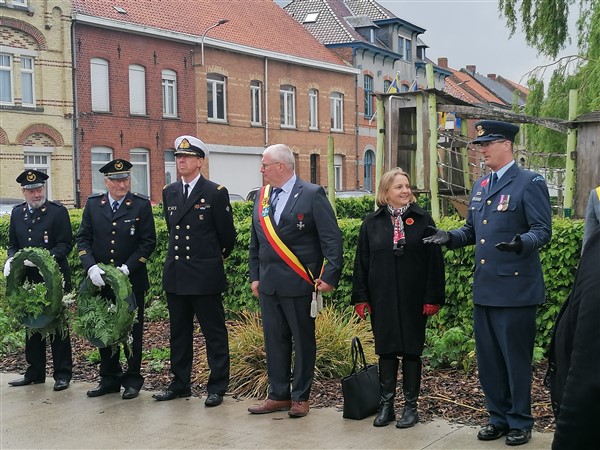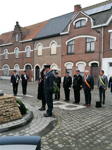After the ANZAC Day ceremony at the NZ Memorial at Messines, a short tribute to the Belgian fallen was done at the local Belgian War Memorial by the New Zealand and Belgian officials. The Belgian 'Au Champs' (equivalent of the British Last Post) was played by buglers of local Fire Brigade and wreaths were laid. Subsequently all paid tribute as well at to the New Zealand soldiers at the statue of the New Soldier in the town square at Messines