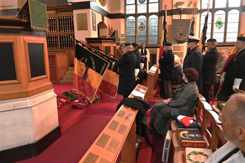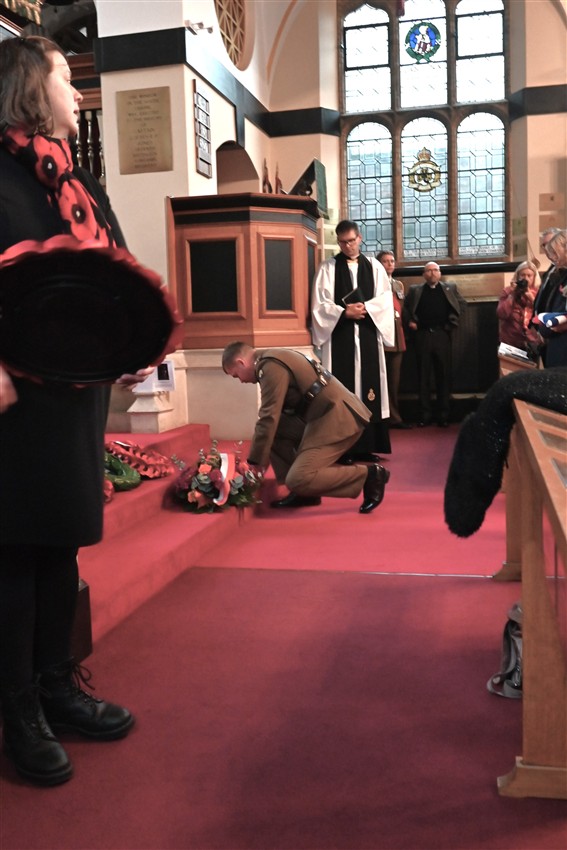 After the outdoor ceremony on the morning of 23rd October 2025 for 2nd Lt. E. L. Kellie, both rededication ceremonies of the afternoon were conducted at St. George's Memorial Church at Ypres due to the bad weather. The ceremonies for 2nd.Lt. Thomas William Brogan (KIA 26 Oct 917) of the 2n Bn. Royal Marine Light Infantry and for 2dn Lt. Eric Arthur Hopkins (KIA 5 May 1915) of the 1st Bn. Bedfordshire Regt. were conducted respectively by Army Chaplains John Money and Joseph Roberts. Relatives of both men attended as did members of the regiments concerned. Thomas an Eric now longer rest as unknown soldiers but known to all an every one for ever. Thomas Brogan rests at Poelcapelle British Cemetery and Eric Hopkins at Bedford House Cemetery