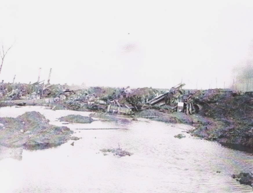 Het waren de Franse troepen die in het najaar van 1914 de boerderij bij de Steenbeek zijn gepaste naam gaven: Ruisseau Ferme, wat letterlijk boerderij bij de beek betekent. Op 22 april 1915 verdreef de versmachtende chloorgaswolk daar Franse troepen zuidwaarts. In de periode tussen 22 augustus en 4 oktober 1917 werd de omgeving van deze boerderij weer vast Brits gebied. In fotomateriaal zagen we bij de boerderij sporen van opgestelde artilleriestukken. In oktober vormt Ruisseau Farm en de Wijdendrift het decor voor de howitzers om van daaruit de oprukkende troepen te beschermen. Op de vooravond van “de Slag van Poelkapelle” (9 oktober) stonden de Britse troepen op hun startlijnen een twee- tot driehonderd meter van de verzonken Broenbeek af. Een goede kilometer westwaarts van Ruisseau Farm verwijderd… Het terrein was intussen zoals de hele Salient al helemaal doorzaaid van granaattrechters. Het hevige openingsoffensief van de Britse artillerie had ervoor gezorgd dat vanaf half juli 1917 ongeveer 4,2 miljoen granaten op het Duitse gebied terechtkwamen. Een helse granaatregen die de streek vernietigde en het terrein in granaattrechters herschiep. Die vulden zich die zomer nog met water van intense stortregens… Tussen diepe trechters en op gladde vlonderpaden moesten de Britse aanvallers zich daar een weg banen…