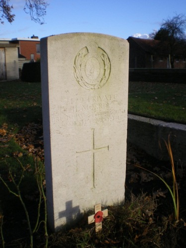 Herbert Morris, soldaat bij het zesde bataljon British West Indies Regiment Beschuldigd van desertie en ter dood veroordeeld op 19 september 1917. Geëxecuteerd op 20 september om 6.10 uur 's morgens op de binnenkoer van het stadhuis. Herbert is de zoon van Wiliam en Ophelia Morris. Hij groeit op in Riversdale, Jamaica. Herbert neemt vrijwillig dienst in december 1916. Hij is op dat moment zestien jaar. Herbert maakt deel uit van het British West Indies Regiment, een regiment bestaande uit voornamelijk zwarte soldaten. In West-Europa nemen ze niet actief deel aan de gevechten. Ze worden ingezet als werkeenheid. Op 20 augustus 1917 is er zo een werkopdracht gepland. Er moet munitie geleverd worden voor artilleriegeschut vanuit Burnt Farm, een positie ten noorden van Ieper, op enkele honderden meter van de frontlinie. Herbert en zijn peloton vertrekken vanuit Poperinge met de vrachtwagen naar Essex Farm. Bij aankomst is Herbert verdwenen. Een dag later duikt hij op in Boulogne, enkel met de helm op, zonder geweer of gasuitrusting. Hij heeft ook geen verlofbriefje bij zich. Herbert wordt gearresteerd en teruggebracht naar het regimentskamp in Poperinge.