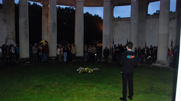 La pluie force le Comité de changer le déroulement de la cérémonie ; nous nous rassemblons sous la rotonde.