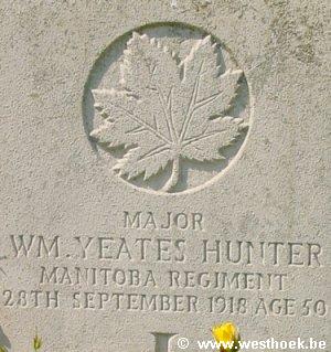 Major WM YEATES HUNTER Canadian Infantry (Manitoba Regt.) who died on Saturday 28 September 1918. Age 50.